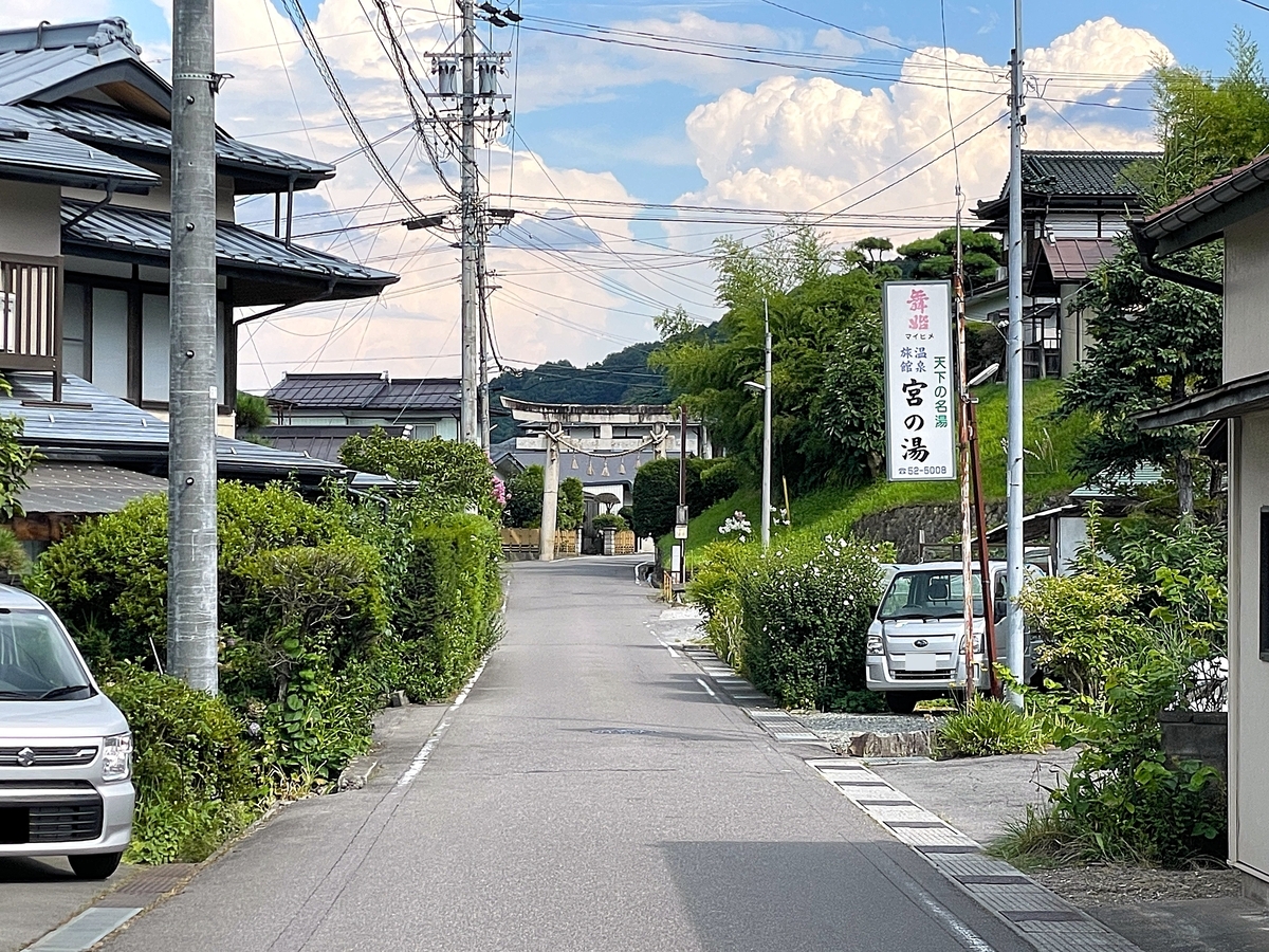 水神橋を渡り道なりに進むと、宝乃湯さんの看板を発見し、坂道を上ります。