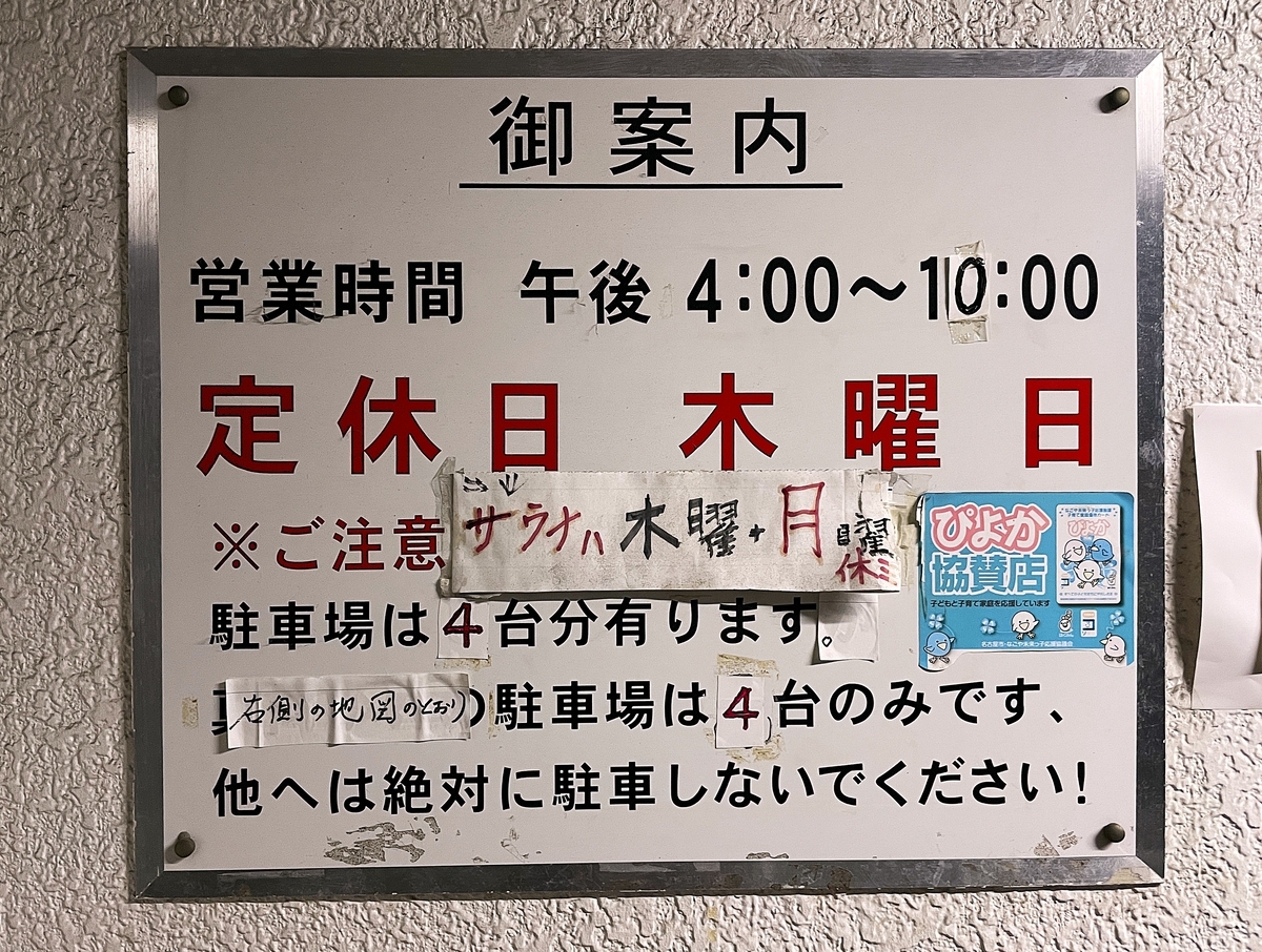 実はコチラへは、2024年3月の長野銭湯巡りの際にも訪問したのですが、コロナ禍以降、現在は事前予約で3名以上の宿泊者にのみ提供しているとの事。