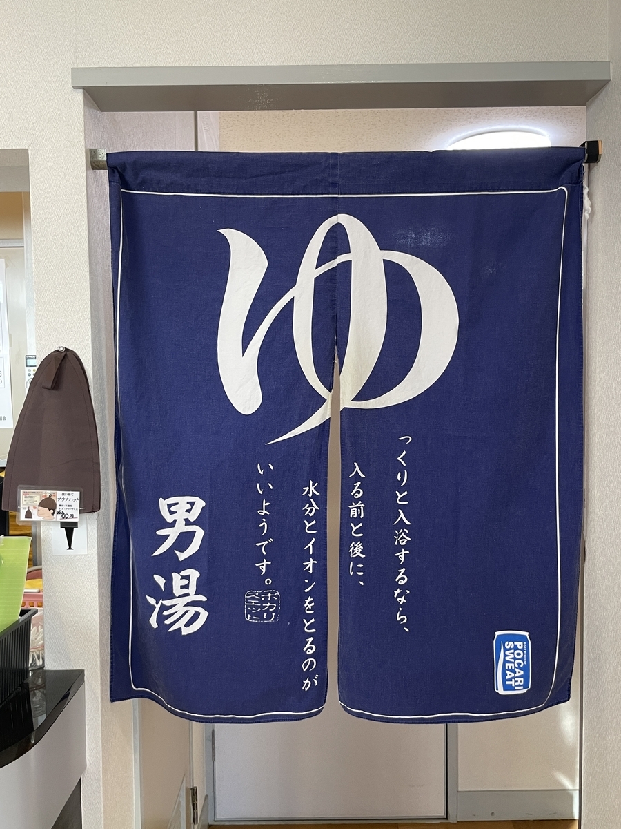 脱衣場への暖簾はポカリスエットとのコラボで、私は初めてお目に掛かりました。