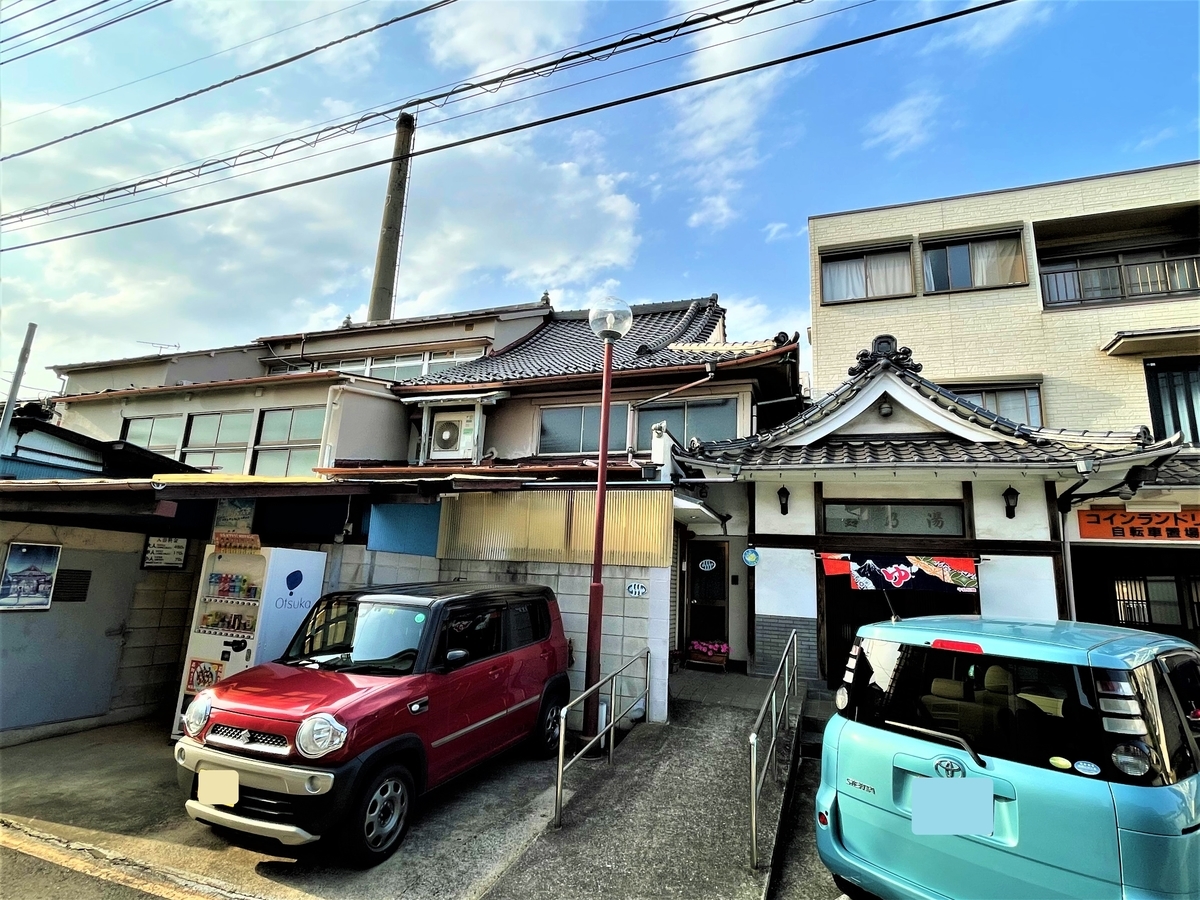 最初の路地を道なりにカーブした先、三本目の路地を左折すると右手に鈴の湯さんの駐車場、その向かいに鈴の湯さんが見えて来ます。