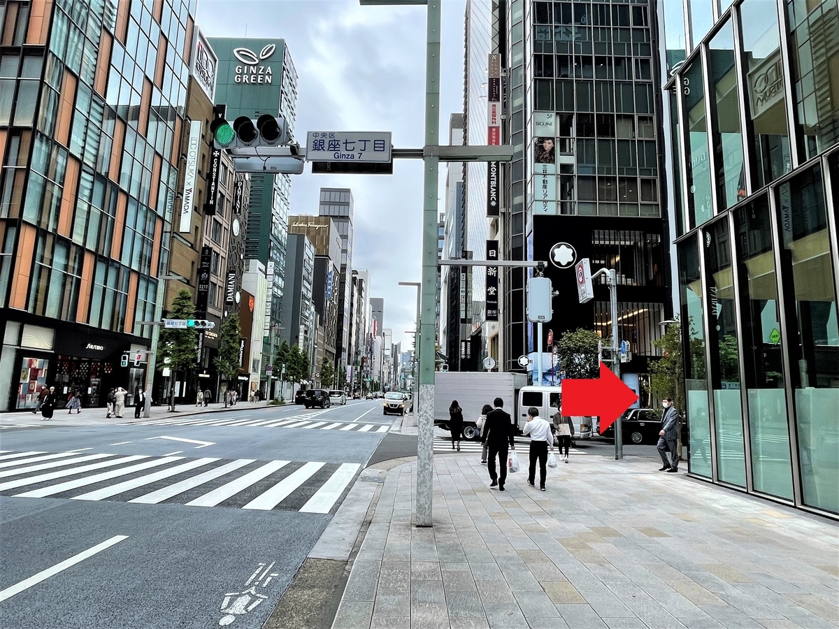 次に銀座七丁目交差点を右折して今度は花椿通りへ。