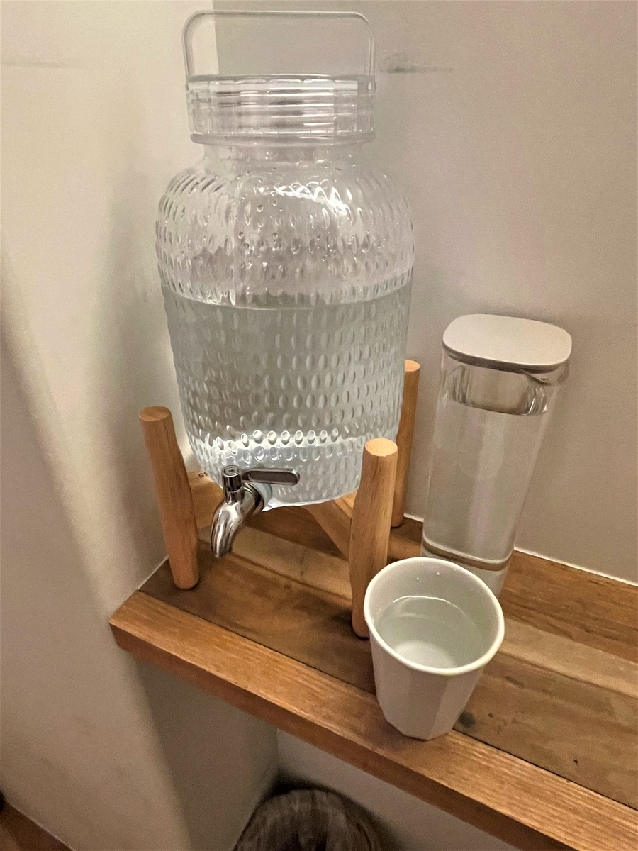 ミネラル岩盤浴とミネラル岩盤浴の間にはコチラも70種のミネラル水で水分補給。