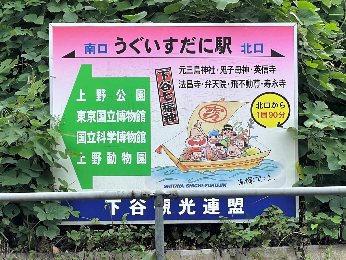 帰りに鶯谷の駅のホームで下谷七福神巡りの看板(しかも作画が赤塚不二夫!)を発見