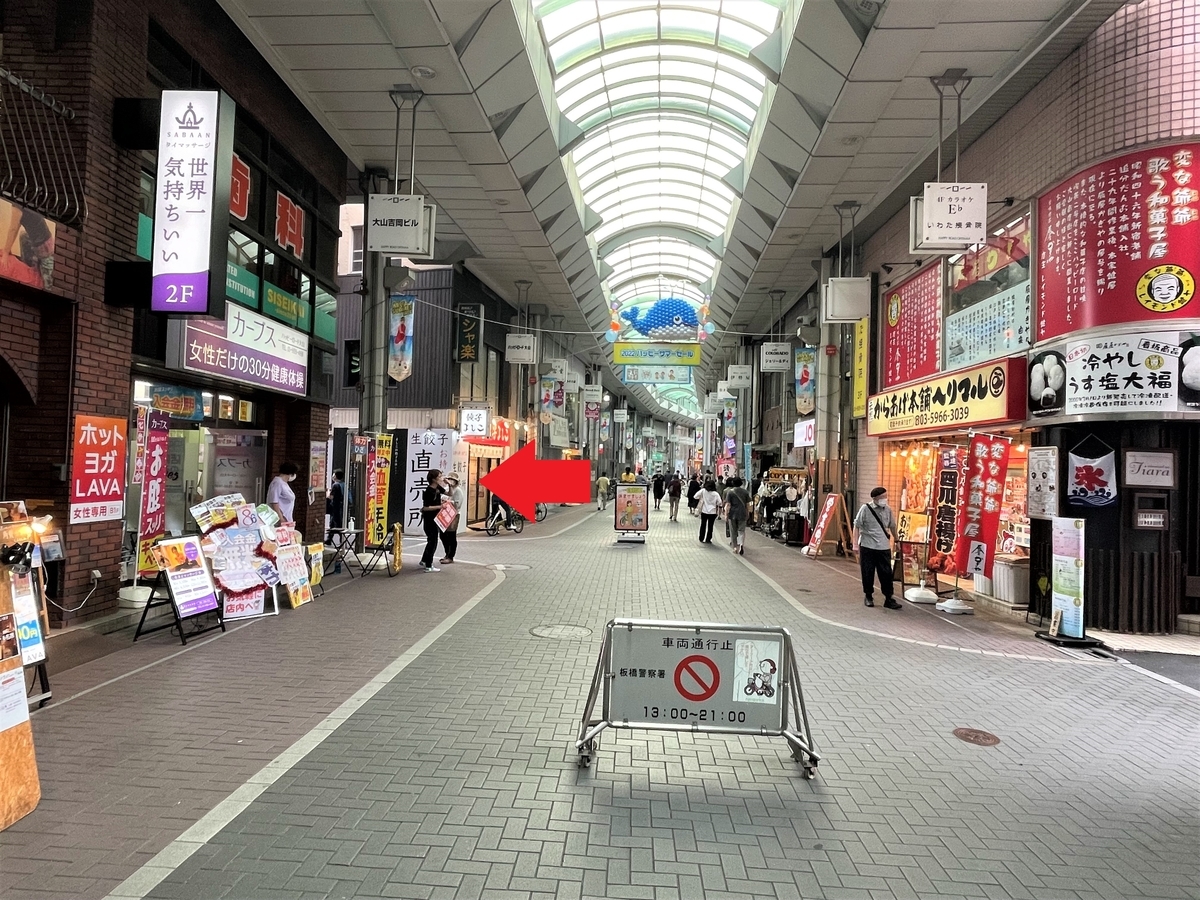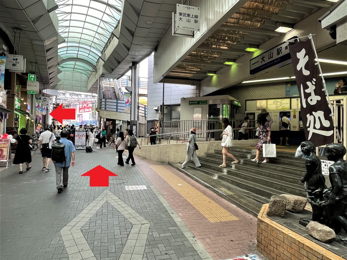 東武東上線 大山駅南口を出たら、右手へ進み、すぐ左折して大山ハッピーロードへ。