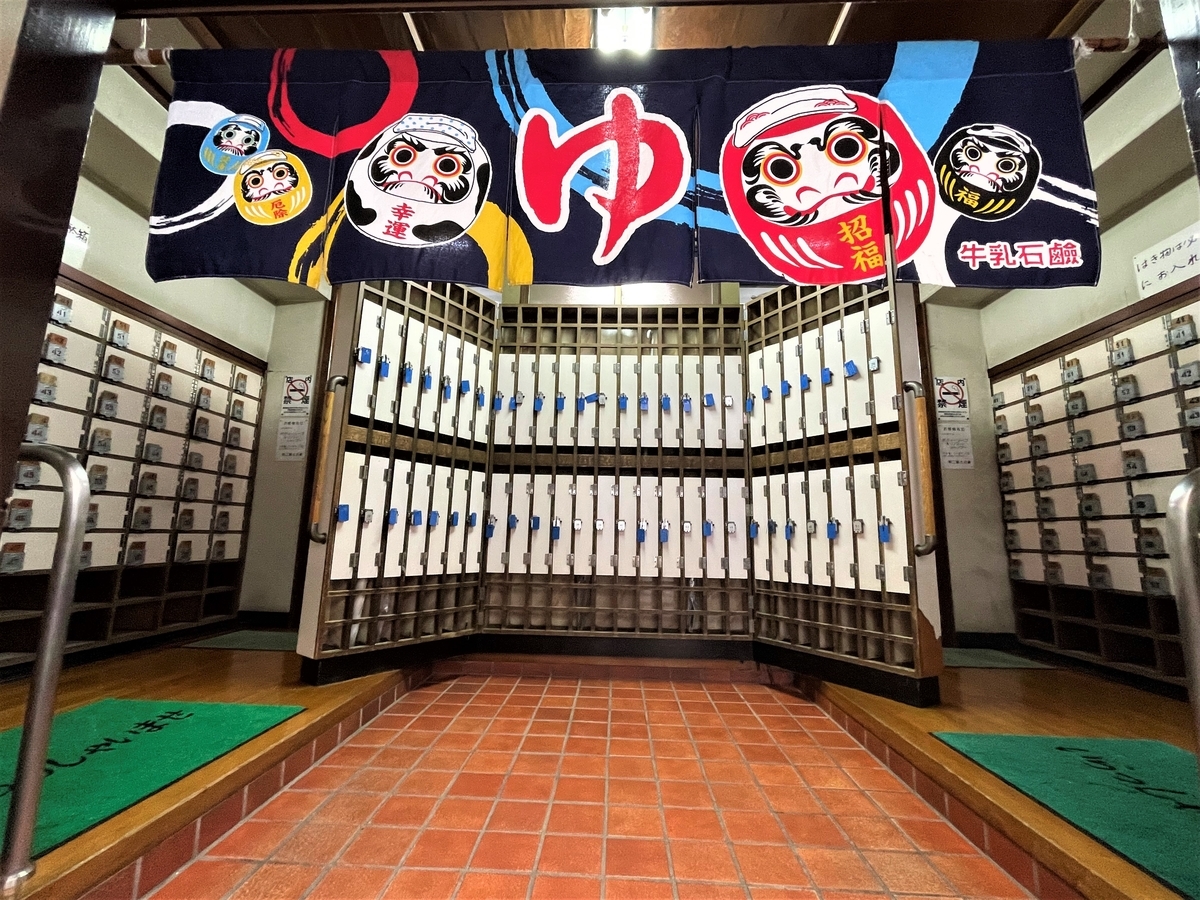※コチラは板橋区浴場組合Webサイトから拝借した女湯の脱衣所風景ですが、入口脇には牛乳の冷蔵庫、その隣におかまドライヤーが見えます。