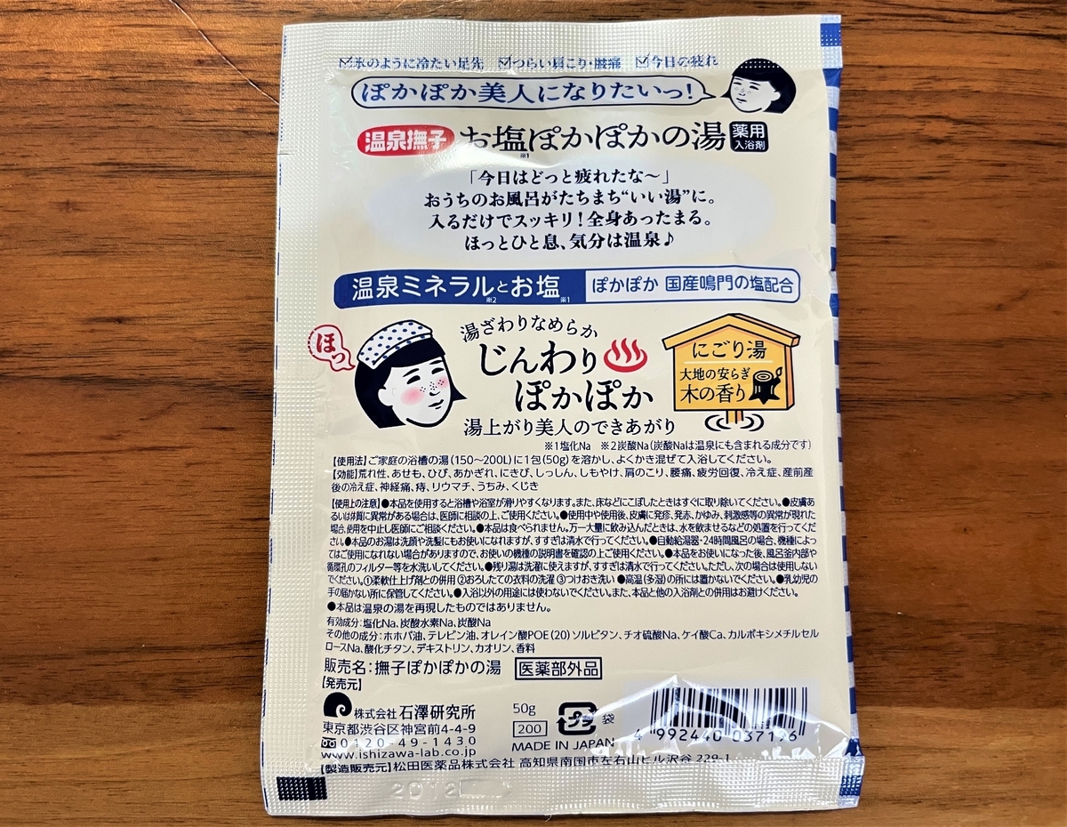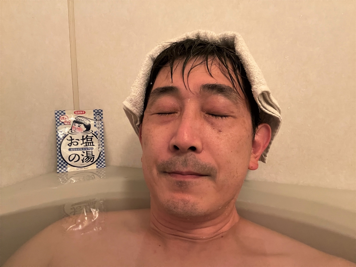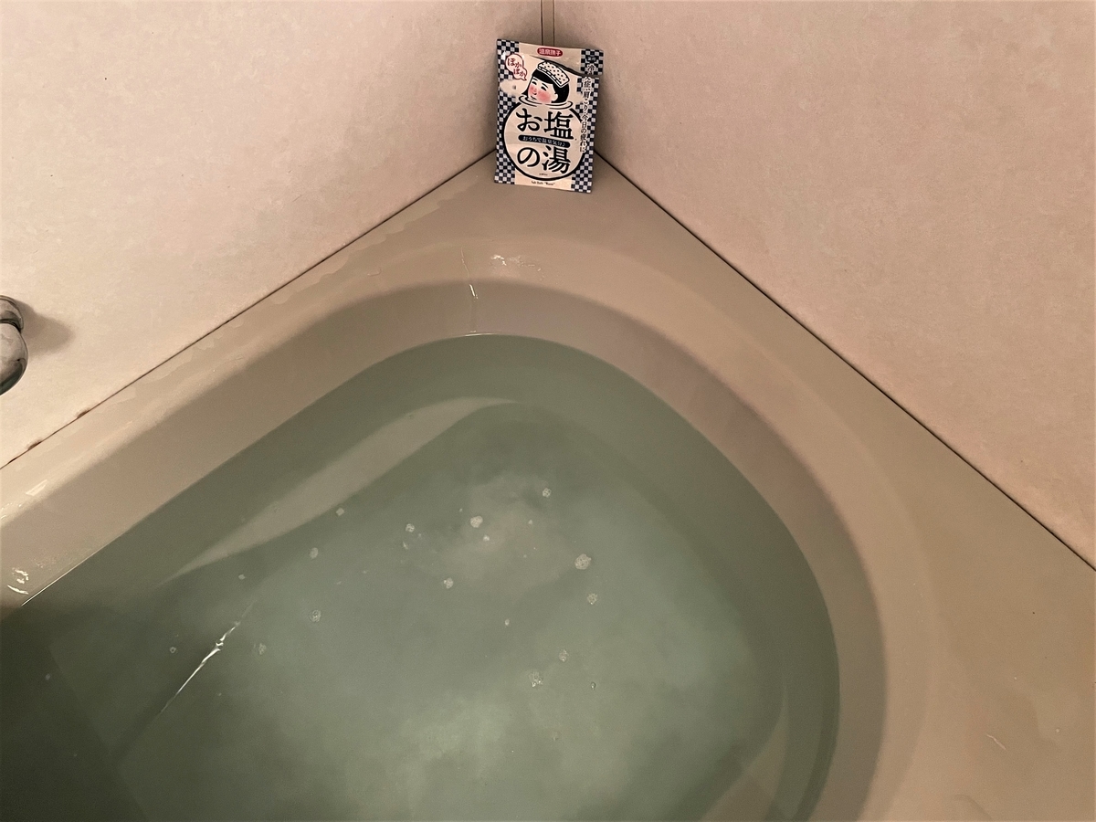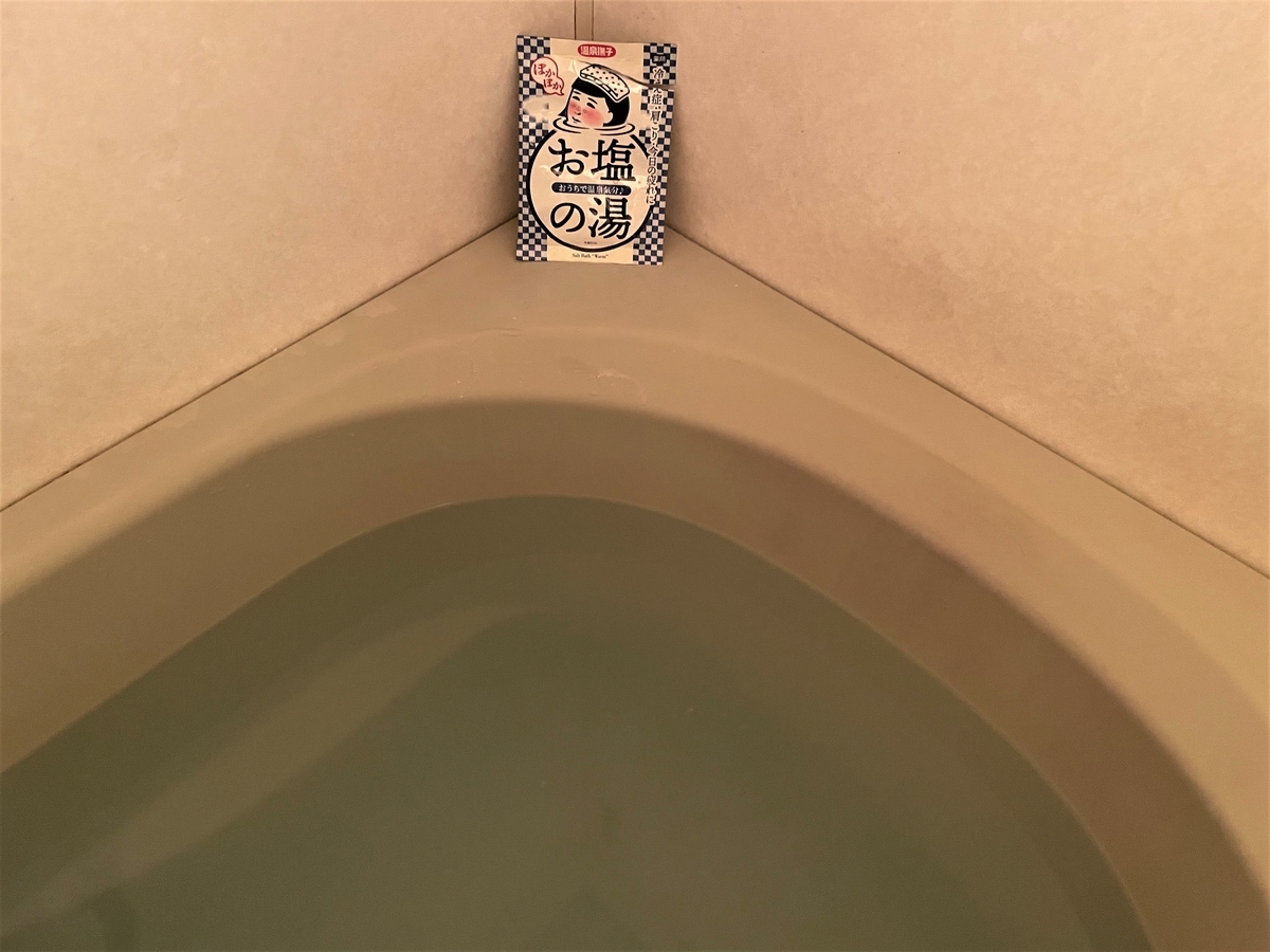 この日は自宅入浴剤デーで、「おうちで温泉気分♪ お塩の湯」を試してみました。