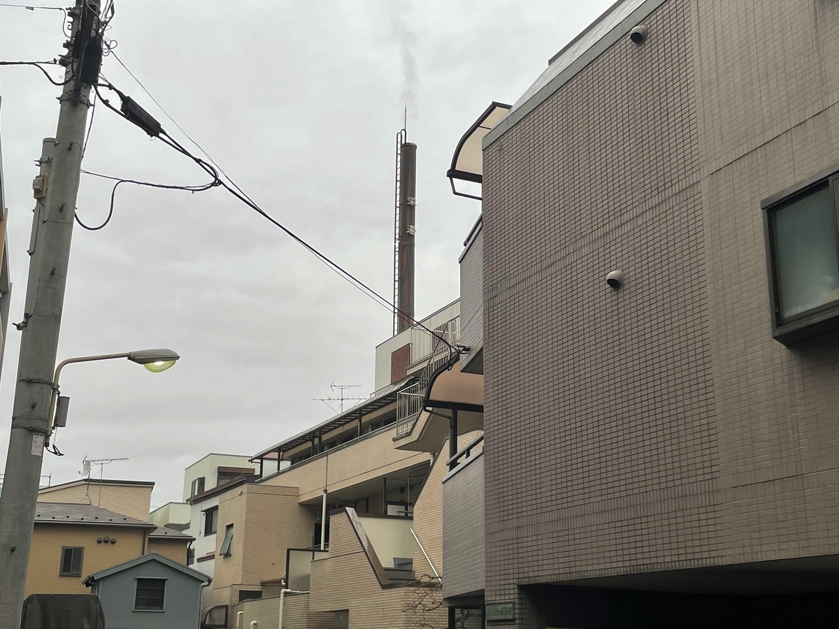 道なりに進むと栄湯さんの屋号が書かれた煙突から白煙が天に昇っていました。