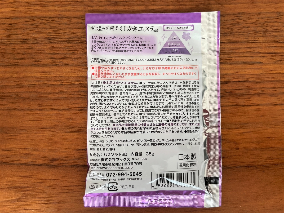 この日は自宅で、「汗かきエステ気分 スウィートドリーム」を試してみました。