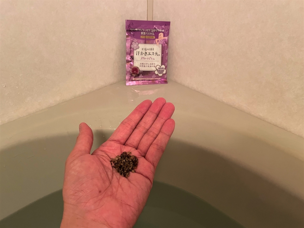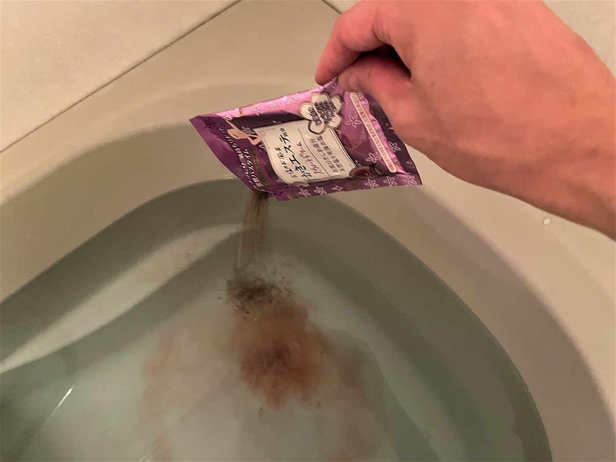 それではその黒いバスソルトをザラザラッと湯船に投入。