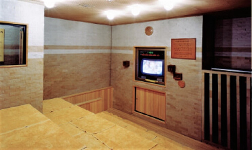 麦飯石が多用された室内で、部屋全体からの輻射熱も感じられ、室温は50℃程。