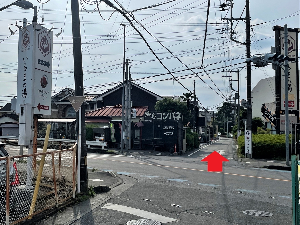 アクアリゾートいるまの湯(以下「いるまの湯」)さんへは、 西武池袋線 入間市駅北口より、まずは西武線に沿うように道なりに左手方向へ進みます。