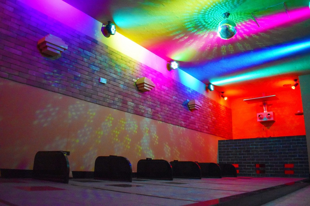 ミュージックロウリュタイムに入ると一転!爆音ミュージックと共にミラーボールが回転し、七色の照明でさながらライブ会場にw