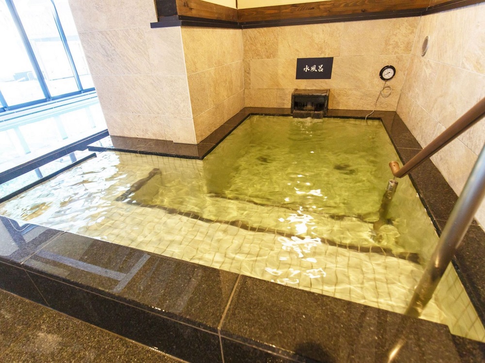 発汗後はサウナ室前の超軟水水風呂へ。こちらは水温15℃。
