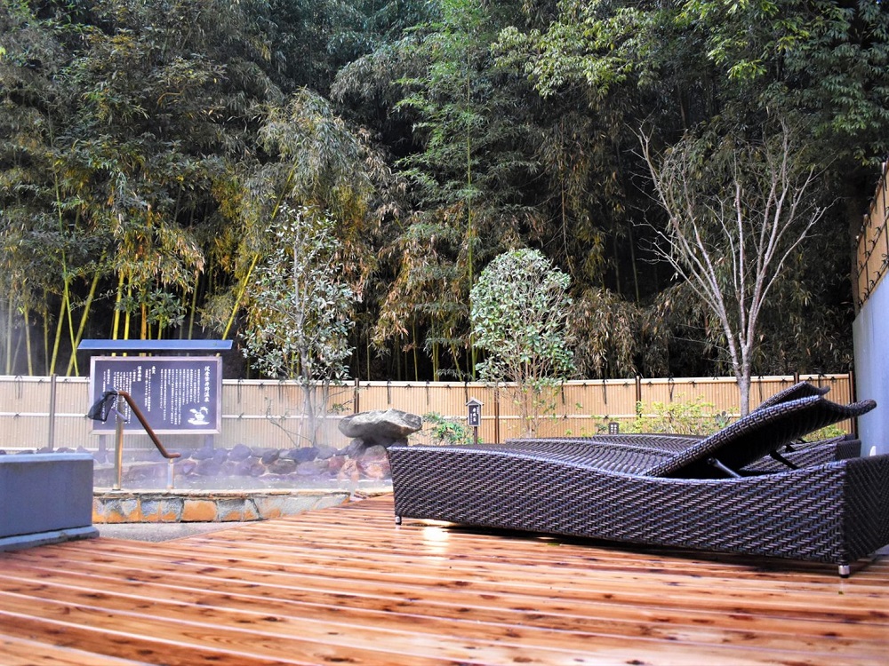 2セット目からは、露天に多数あるととのいスペースの空いているところをお好みでチョイス。外気浴で竹林を抜ける風と鳥の鳴き声に身を任せてのととのいタイム。
