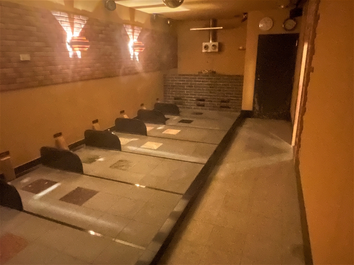 かなりサウナ寄りの岩盤浴でタップリ発汗したところでクールルーム涼みの間へ。