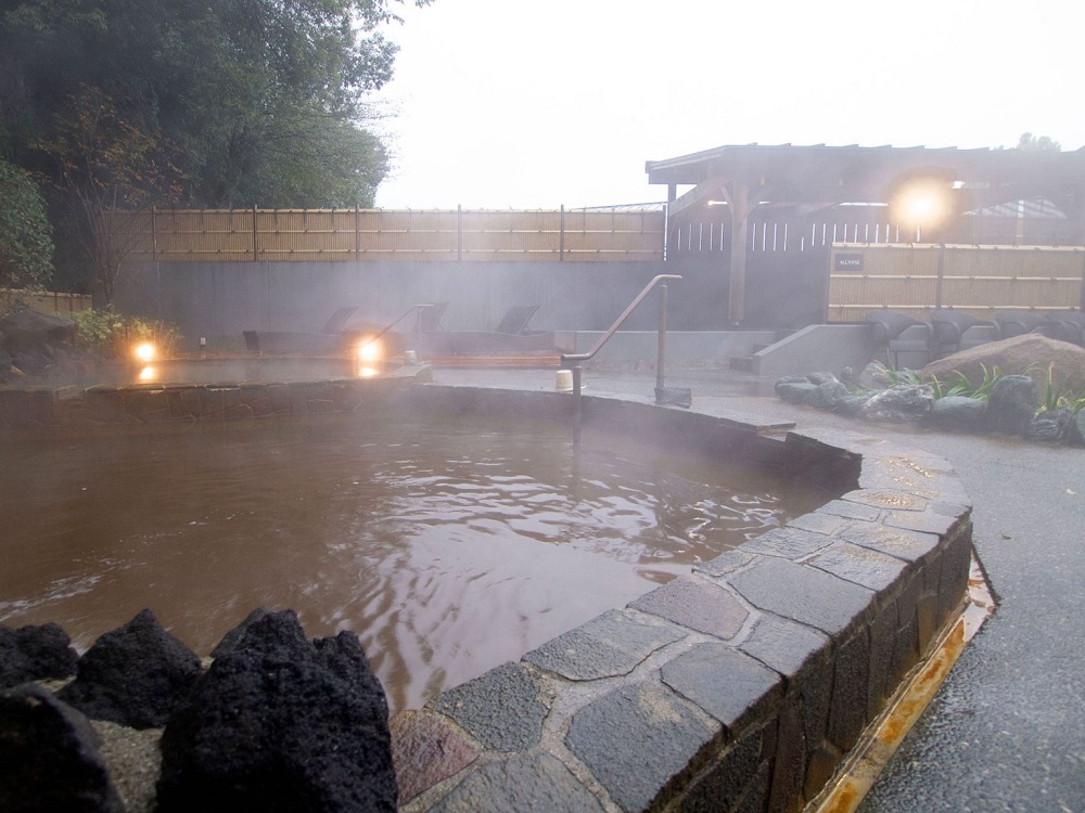 クールダウン後、1セット目は源泉寝ころび湯での温冷同時外気浴。