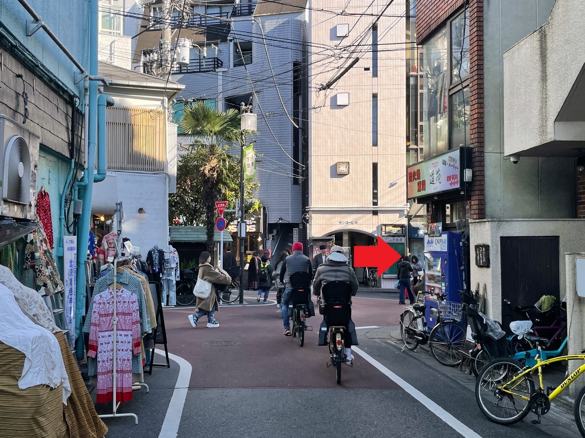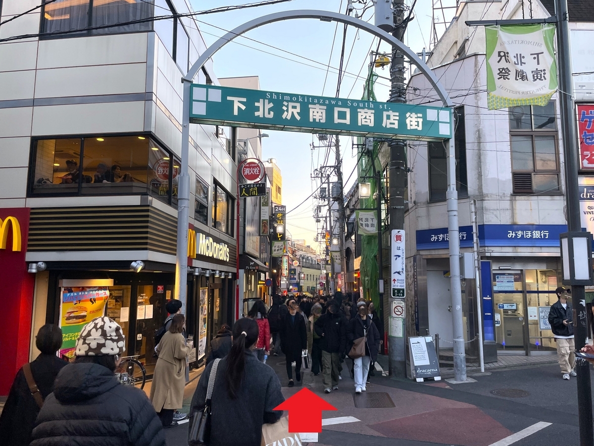 次に下の写真の突き当りまで来たら右折し、下北沢南口商店街へ。