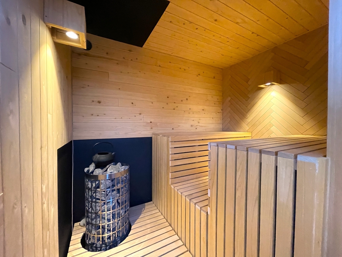 A棟のサウナは2つあり手前がMetsa(メッツア「森」)、奥がkukka(クッカ「花」)。ちなみにHUBHUB下北沢では、このA棟の2つのサウナに加え、B棟の2つのサウナも全て本場フィンランドのHARVIA社製ストーブを使用し、その全てがセルフロウリュ可。室温はいずれも80℃~82℃程と比較的マイルド。
