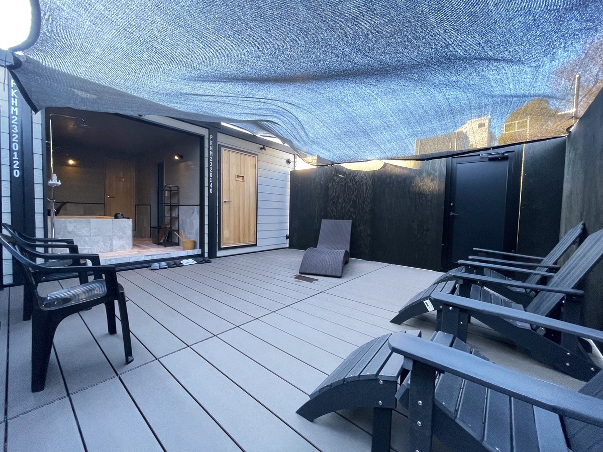 クールダウン後は外気浴テラスでととのいタイム♪