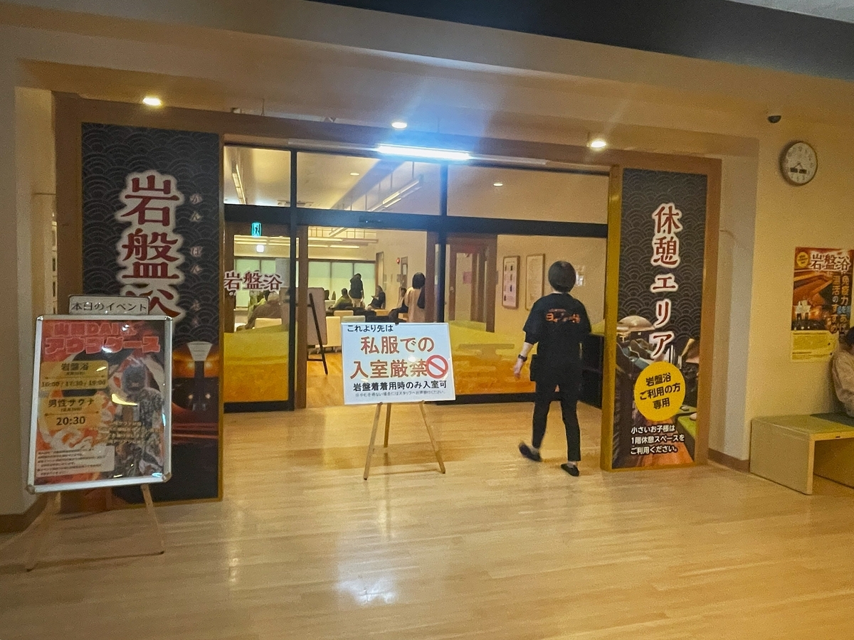 それでは受付を済ませたら、岩盤浴着に着替えまず岩盤浴室へ。