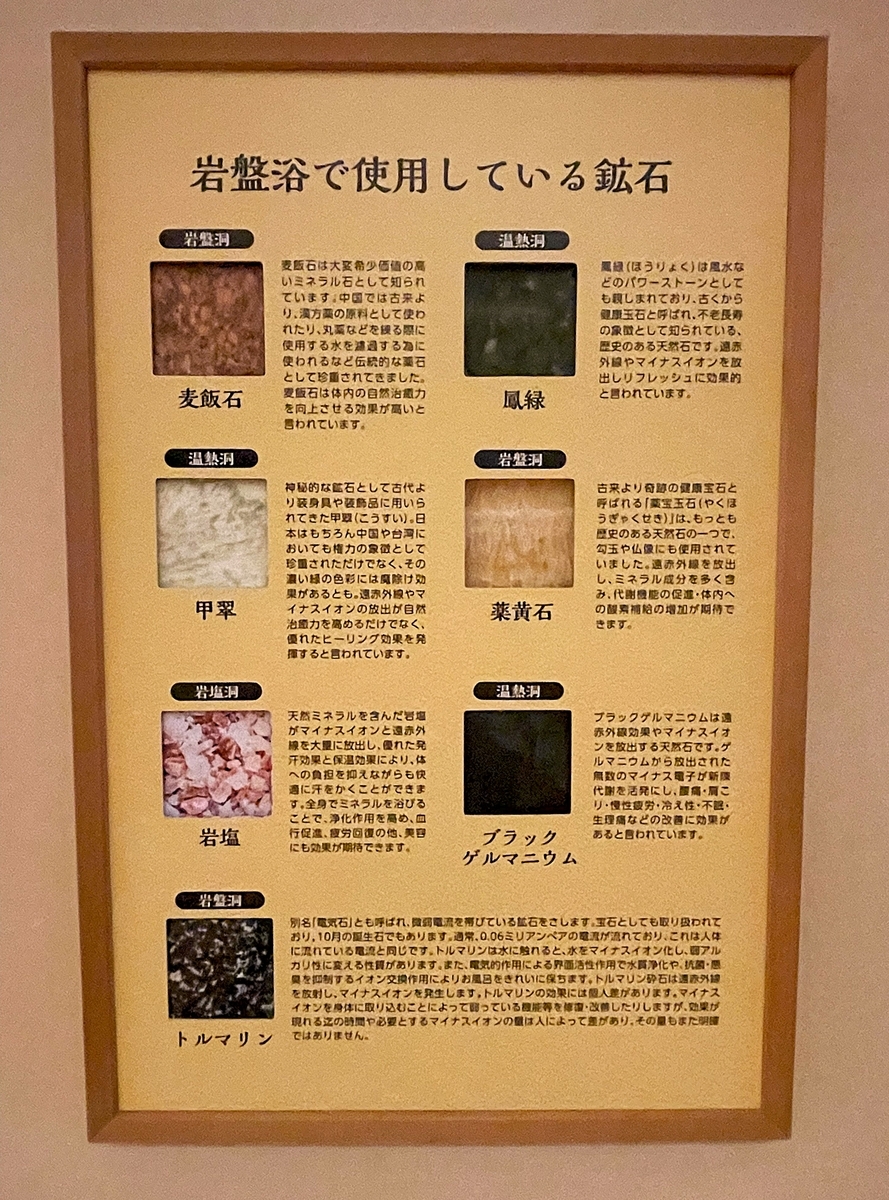 下の写真は、コチラの各岩盤浴室で岩盤に使用されている鉱石。