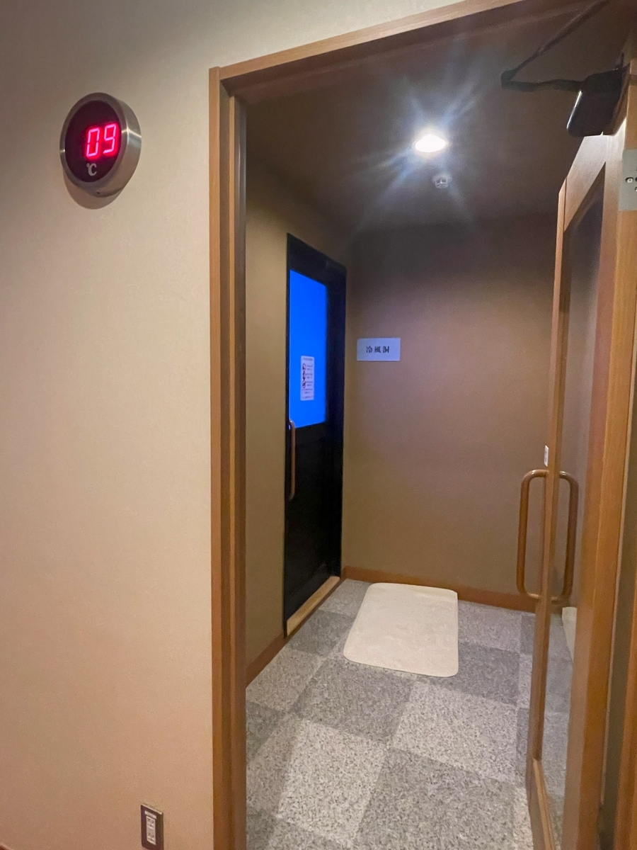 3種の岩盤浴を巡り、タップリ発汗したところでクールダウンの冷風洞(9℃)へ。