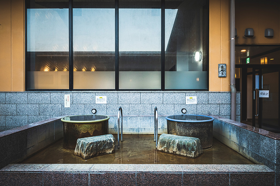 浴室では、まず岩盤浴での汗を丁寧に流し、お清めを済ませたら内湯からライド温♨