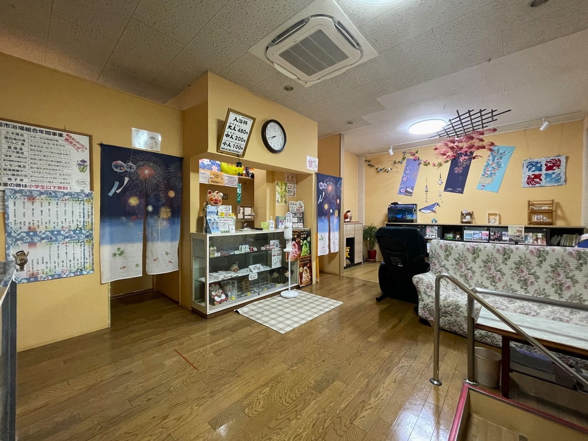 中に入ると小綺麗なロビーの奥にフロント。左右に男女別入口があります。