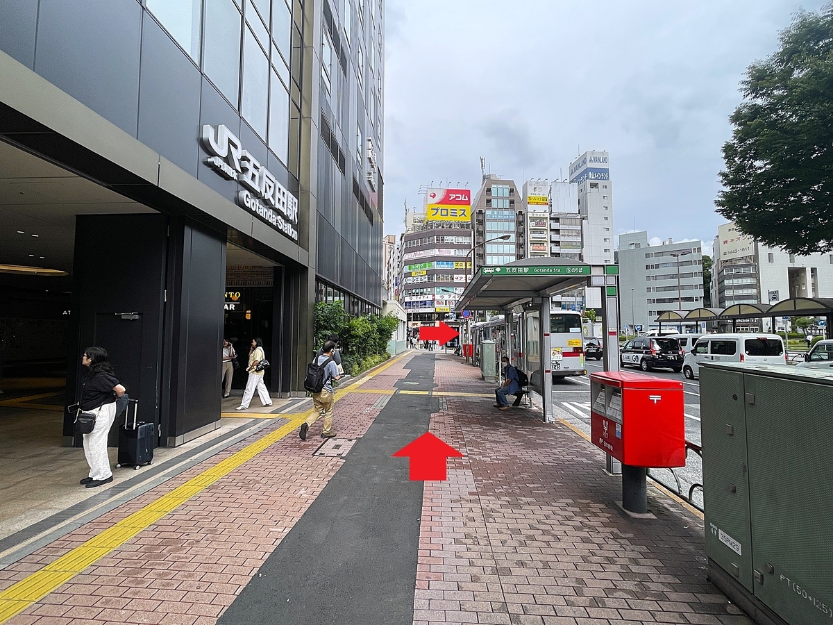 スゴイサウナ五反田駅前店さんへは、JR五反田駅東口を出たらそのまま左手方向に進み、その先一つ目の交差点を渡ったところで右折。
