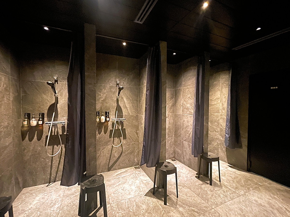 まずはいつも通りシャワーブースで全身お清め。