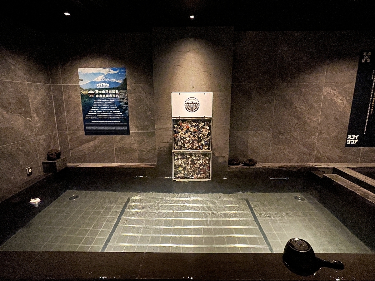 しっかり蒸されたらサウナ室お隣の富士山溶岩鉱石循環濾過水風呂へ。