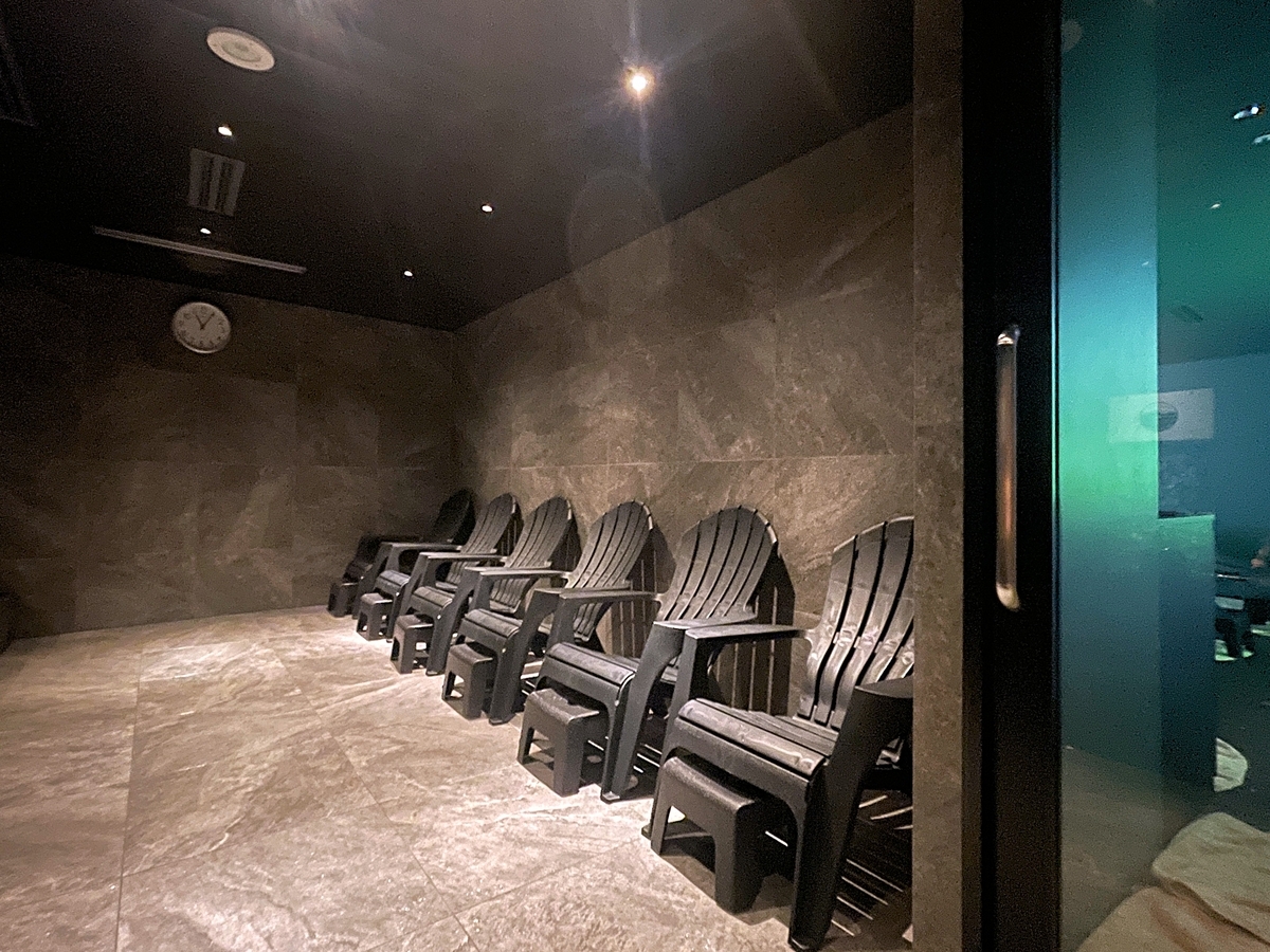 クールダウン後は、温浴槽前の休憩椅子かととのいスペースでゆったりリラックス。