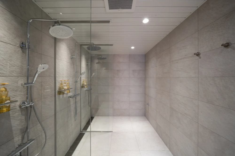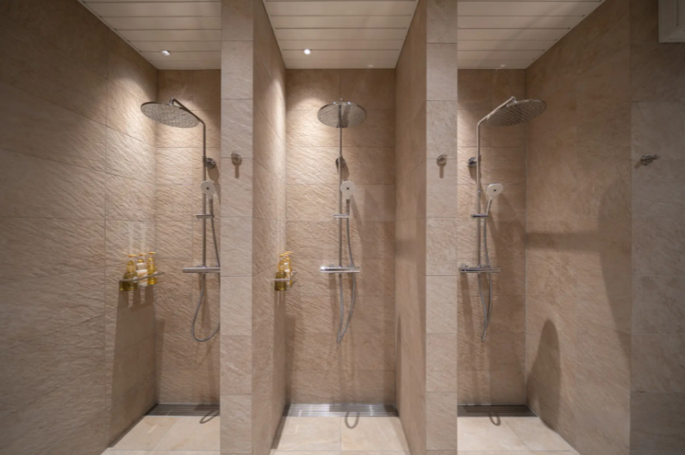 準備を済ませたら、まずはシャワーブースで全身お清め。