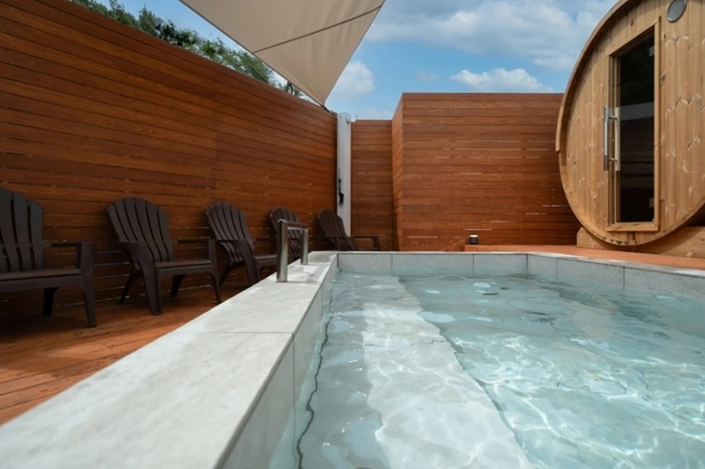 山サウナには二つのサウナ室があり、まずはバレル型のkawasemi(カワセミ)から。