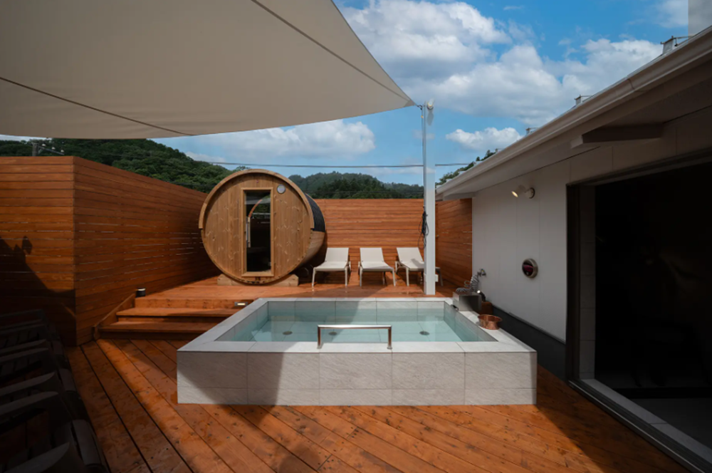 ・musasabiサウナ10分⇒水風呂「涼」1分⇒森テラス3分