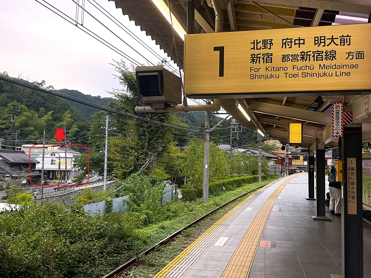 高尾山口駅ホームからは、お目当てのTAKAO36SAUNAさんが見えます。