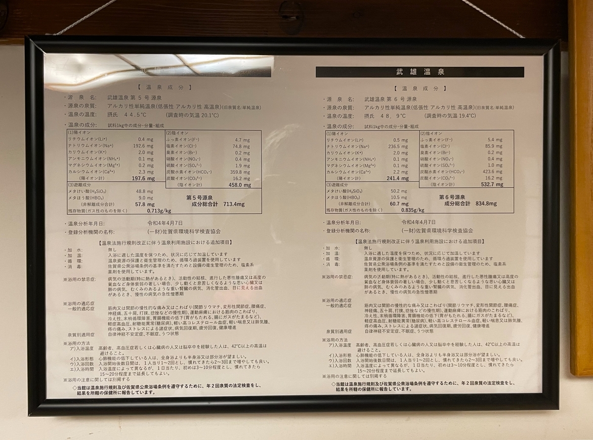 湯船には奥の湯口から滔々と源泉が注がれており、浴槽の縁からは静々と掛け流されています。源泉は元湯と同じ武雄温泉5号井と6号井のアルカリ性単純温泉。