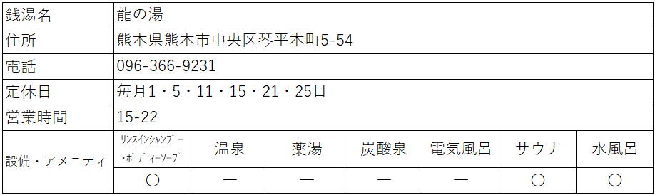 この日は九州湯巡り旅行で熊本銭湯「龍の湯」(たつのゆ)さんへ行って来ました。