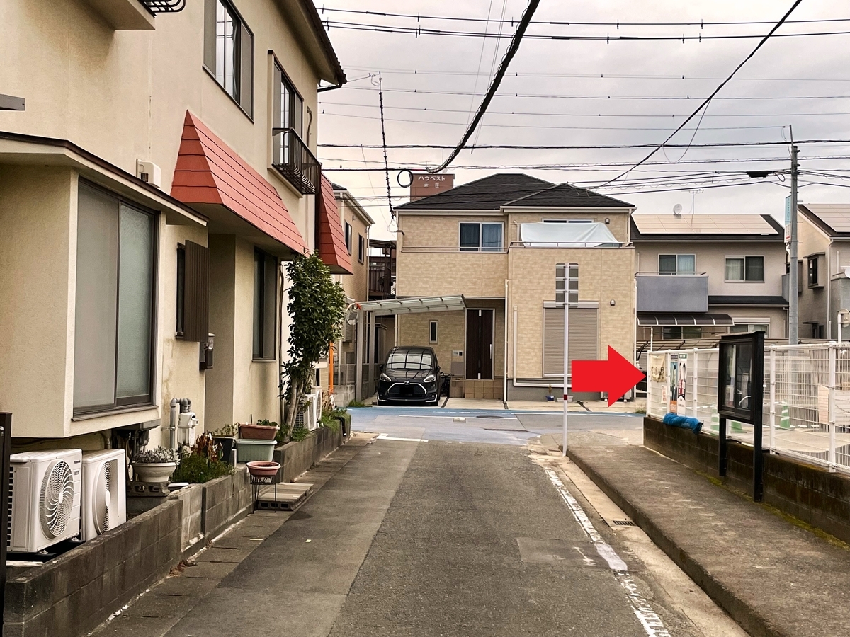 ココからは住宅街の中をジグザグに縫って龍の湯さんを目指しますが、下の写真の矢印の順番に進んで行きましょう。