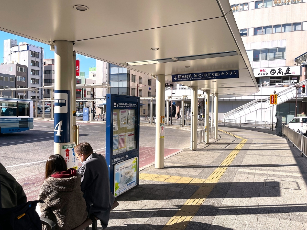 湯楽の里 土浦店さんへは、JR土浦駅西口4番バス乗り場から関東鉄道バスに乗車。