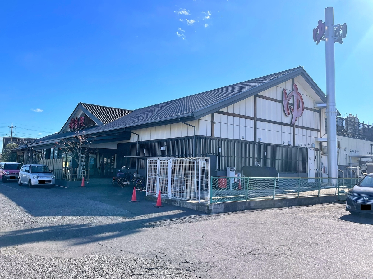 バス停からなら徒歩1分で湯楽の里 土浦店さん到着。